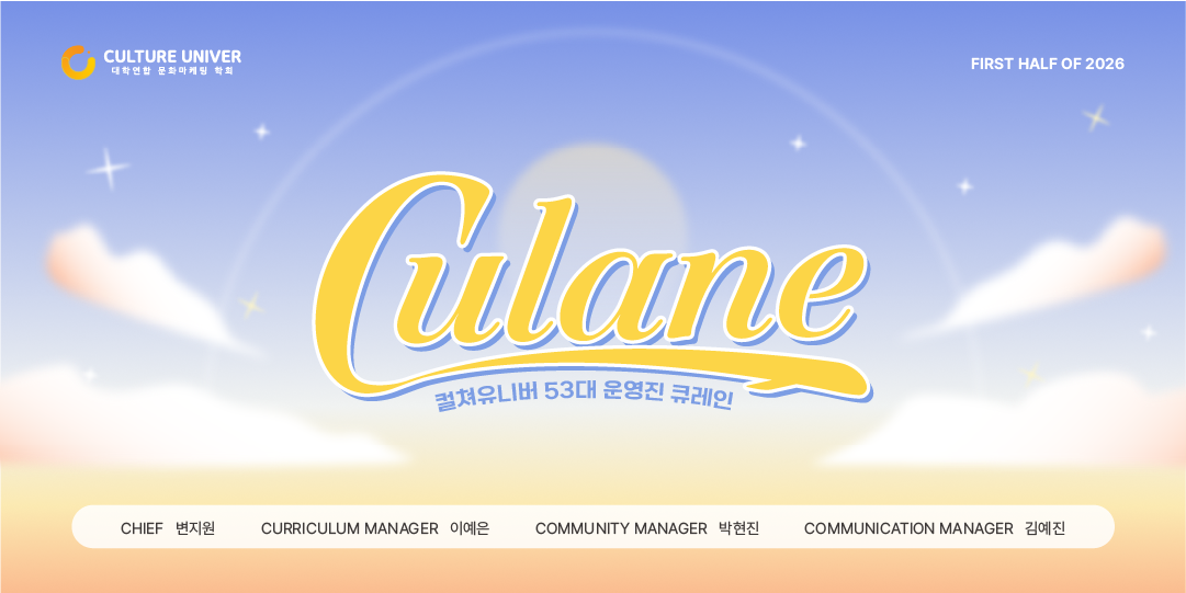 대학연합 문화 마케팅 학회 컬쳐유니버 53대 운영진 'CUlane'입니다.